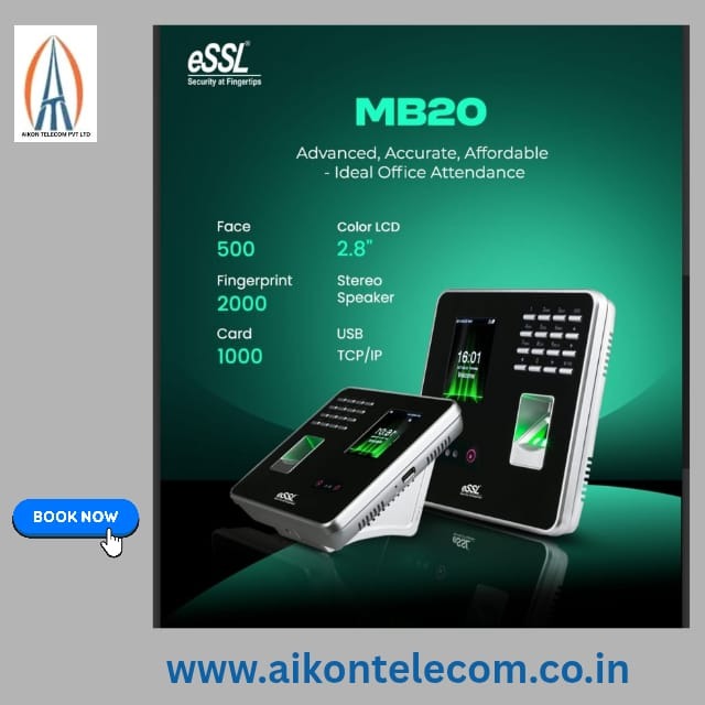 We provide the best-in-class MB20 Office Attendance System, designed to streamline employee time tracking with advanced biometric technology. The MB20 supports fingerprint, face recognition, RFID cards, and password verification, making it a versatile and secure solution for modern offices. Ideal for small to medium-sized businesses, it can store up to 1,000 users and 50,000 logs, ensuring accurate and efficient attendance management. Our expert team offers complete setup, software integration, and after-sales support, making us the trusted choice for hassle-free attendance solutions. Book now for a reliable, all-in-one attendance system tailored to your office needs.