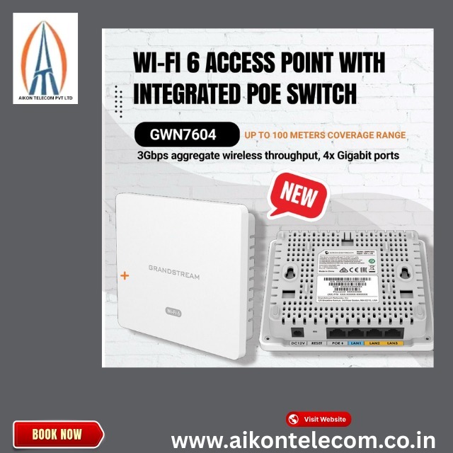 Upgrade your network with the powerful Grandstream GWN7604 Wi-Fi 6 Access Point with Integrated PoE Switch, designed for high-speed connectivity and seamless performance in offices, hotels, schools, and smart homes. Featuring advanced Wi-Fi 6 technology, built-in PoE ports for easy device connectivity, strong security protocols, and centralized cloud management, the GWN7604 delivers faster speeds, wider coverage, and reliable network stability. Perfect for businesses looking to enhance productivity and reduce infrastructure costs, this all-in-one access point ensures efficient and scalable networking solutions. Book now to get the best price, expert support, and professional installation services for your Wi-Fi 6 upgrade!
